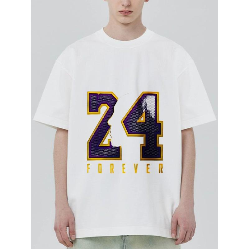 Black T Shirt with 24 Forever Graphic and Silhouette Design for Casual Wear