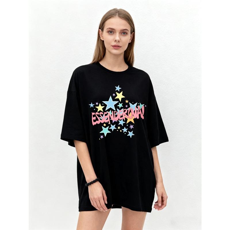 Oversized T Shirt Black Essential Star Print Graphic Tee Casual Streetwear Fashion Top Women Summer Outfit