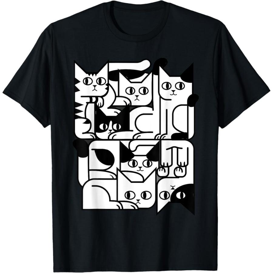 Feline Animal Friends Apparel for Cat Enthusiasts Geometric Cat Silhouette Abstract Kitten Classic Cute Cat T-Shirt, Small, Black
