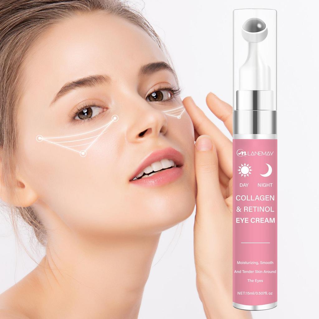 Collagen & Retinol Eye Cream-Massage Roller For Eyes-Tighten & Smooth Fine Lines-Suitable For Men And Women, 15ml
