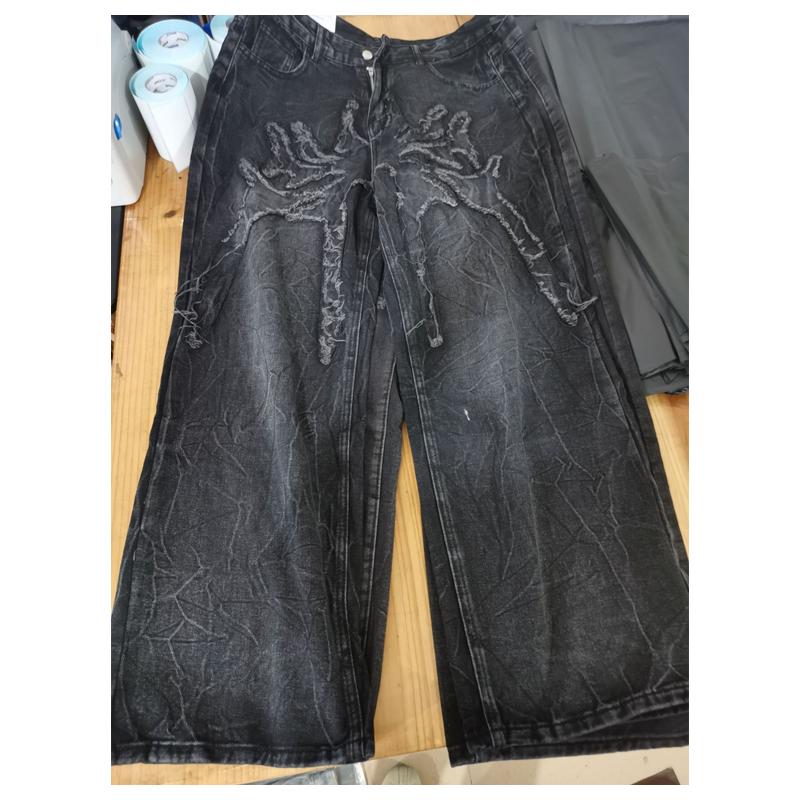 Pantalones de Mopa Baggy Unisex Gótico Retro Y2K Jeans Fantasma High Street Parche Bordado de Araña Hip Hop Streetwear Vaqueros Rectos