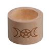 Wood Candlestick Pentacle Carved Tealight Holder Desk Decoration for Tarot Card Reader