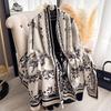 Autumn Winter Elegant Floral Design Scarf Imitation Cashmere Soft Warm Versatile Shawl Coldproof Windproof Blanket