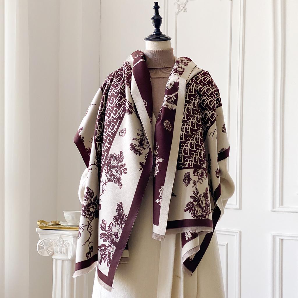 Winter Luxury Women Two-Sided Jacquard Scarf Cashmere Warm Shawl Outdoor Coldproof Windproof Blanket Pashmina Elegance Scarf