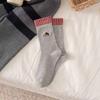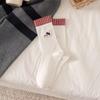 Red Checkered Flanged Two-piece Embroidered Cat Cute Cartoon Bow Mid-calf Socks for Women, Versatile and Trendy Socks