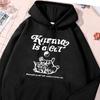 Karma Is A Cat White Sketch Printed Hoodie Female Basics Simple Sweatshirts Leisure Loose Sportwear Street Oversized Clothing