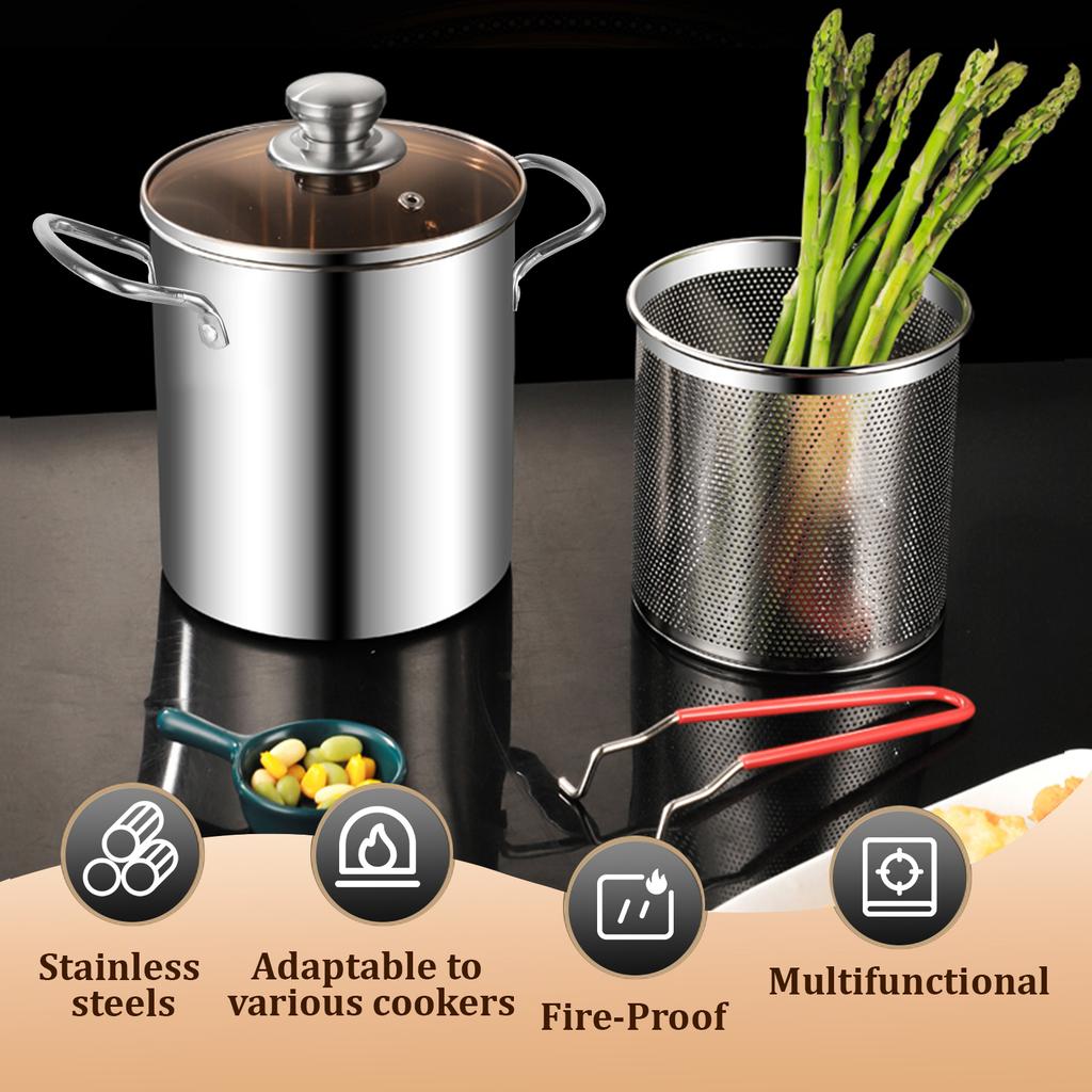 304 Stainless Steel Frying Pan with Basket and Lid Household Food Grade Frying Pan Multifunctional Kitchen Frying Pan