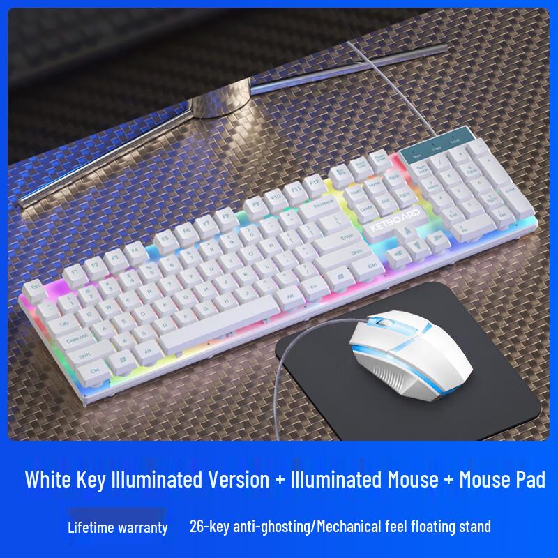 Wired White Floating Key Custom Mechanical Keyboard & RGB Mouse Combo