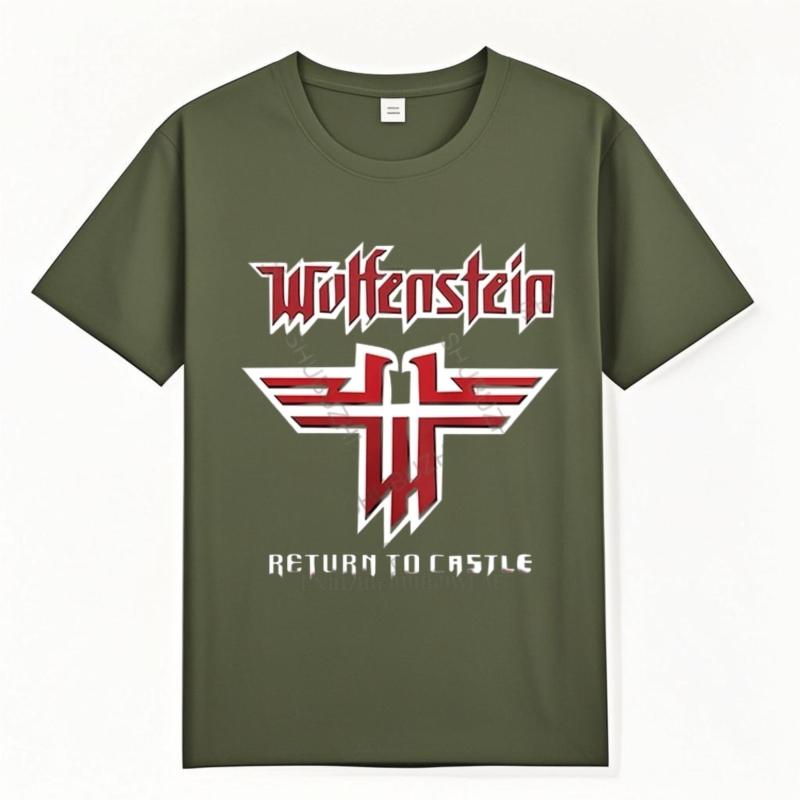 Hot Sale Homme Summer t-shirt Brand o-neck Tshirts Rare!! Wolfenstein Logo Famous Video Fashion Cotton Unisex Teeshirt Euro Size