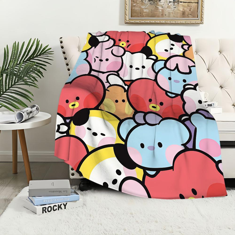 Cartoon Cute B-B-BT-21-ES Blanket Flannel warm comfort soft plush blanket For Picnic Beds Sofas Homes And Bedrooms