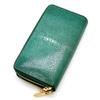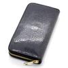 [Revetta] Billetera Larga de Cuero de Raya con Cremallera Redonda, Patrón de Raya y Galuchat, Cuero Genuino Naranja con Interior de Cuero Naranja [195stw]