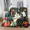 Christmas Cat in Tree with Lights Star Pattern Fleece Blanket Festive Winter Holiday Throw Blanket Soft Cozy for Couch Bed Gift