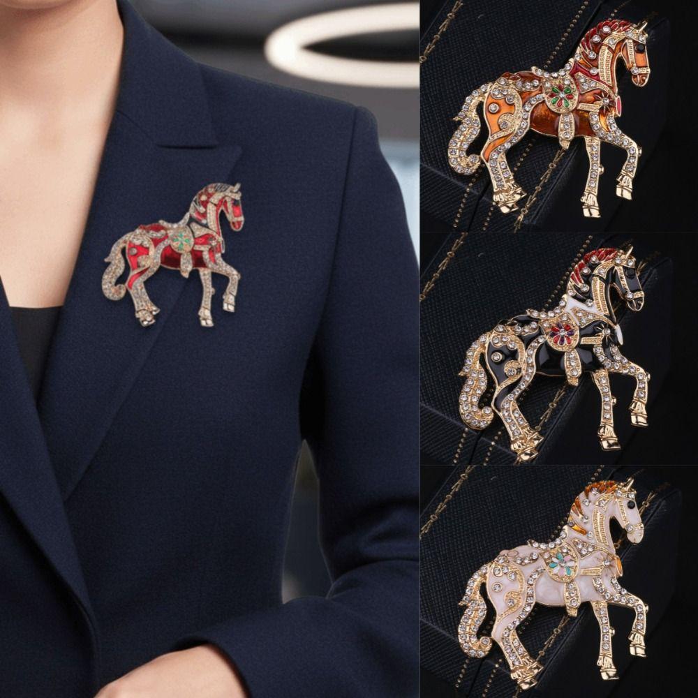 Luxury Zodiac Animal Lapel Pins Rhinestone Metal Badge Pin Strong Horse Brooches for Women