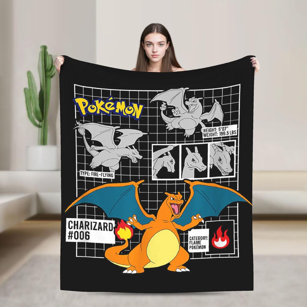 Pokemoned Charizard 006 Schematic Poster Knitted Blankets Fleece Ultra-Soft Throw Blanket for Outdoor Travel Bedspread