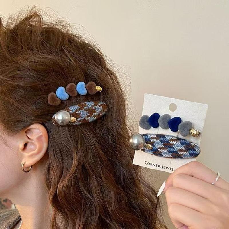 2 Pcs Maillard Plaid Hairpins For Women Girls Sweet Hair Ornament Barrettes Hair Clip Fashion Hair Accessories