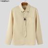 INCERUN Camisas de manga larga con escote en V y capas cruzadas en la parte delantera para hombre