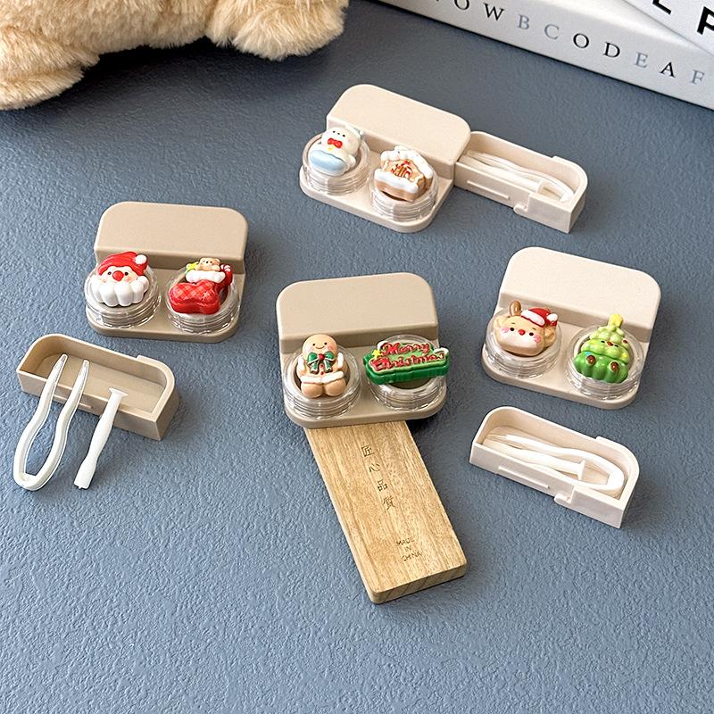 Women's Contact Lens Case with Tweezer Suction Stick Set for Travel Kit Holder Candy Color Contact Lenses Box Cute Cartoon
