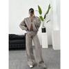 Casual Sweatshirt Pants Set Solid Zippers Jackets Loose High Waist Lace-up Elastic Waist Trousers Suits Sportswear 2 Pieces