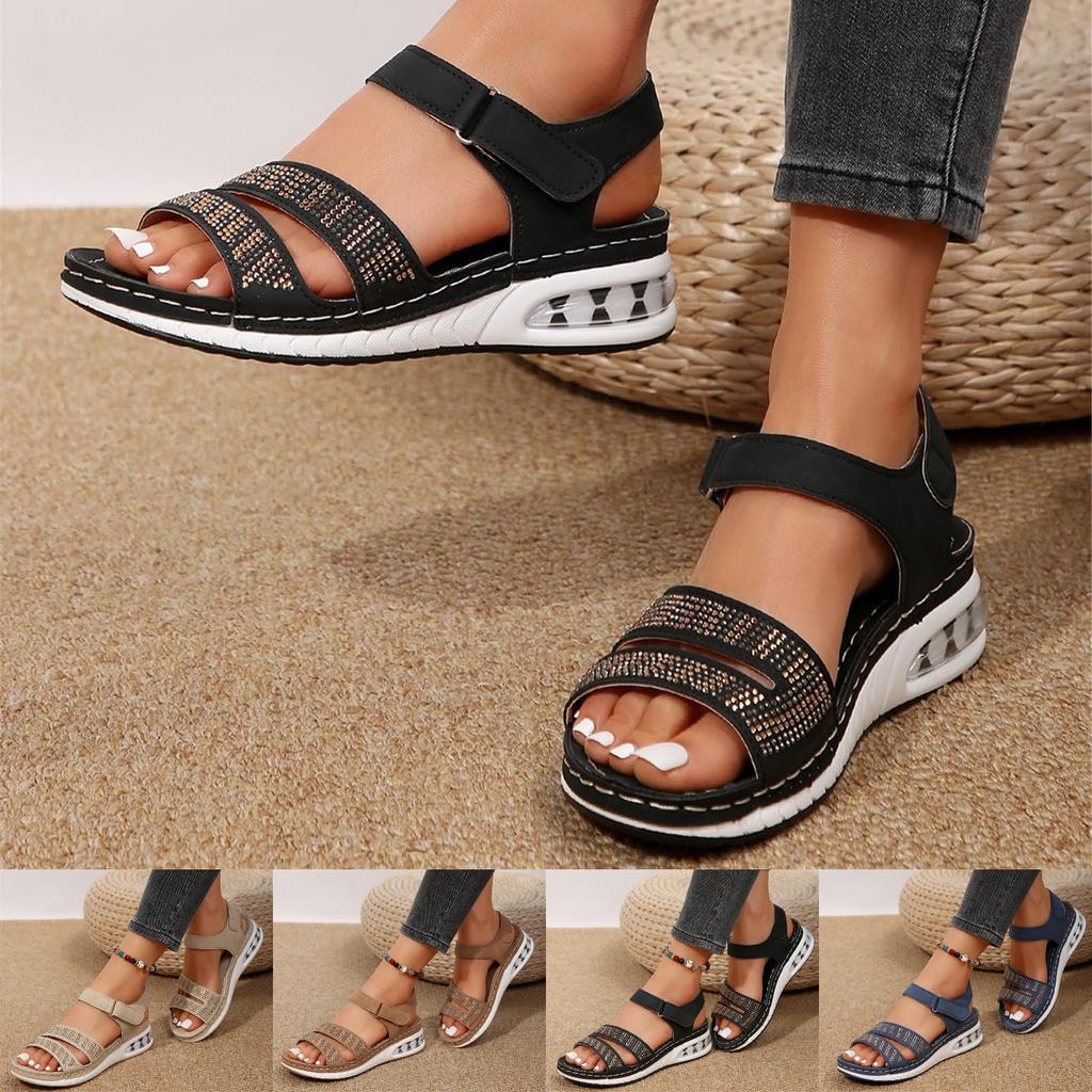 Sandalias ortopédicas cómodas para mujer con soporte de arco para caminar, cuñas de verano informales con velcro ajustable. : Correa abierta y elegante