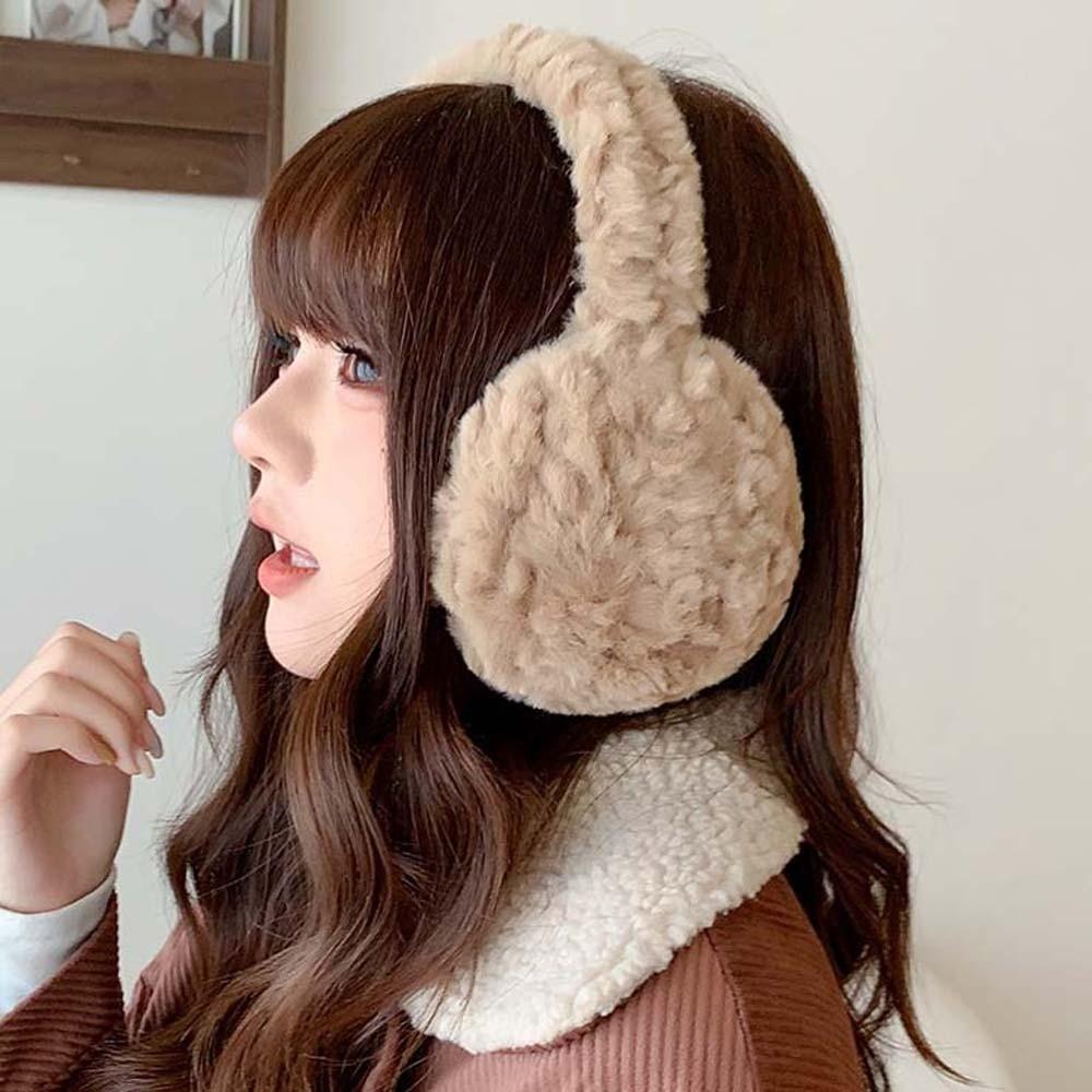 Plush Foldable Ear Cover Windproof Winter Thicken Earflap Fashion Solid Color Earmuffs Ski