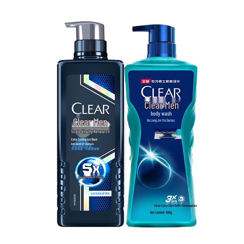 Experience ultimate freshness with the CLEAR Men's Grooming Set. This duo includes a 5x Ice Cool Shampoo (570g) for dandruff control, oil regulation, and scalp hydration, paired with an invigorating Ocean Scent Body Wash (600g). Specially formulated for men with normal hair and combination scalp, this set provides a refreshing and cleansing experience.
