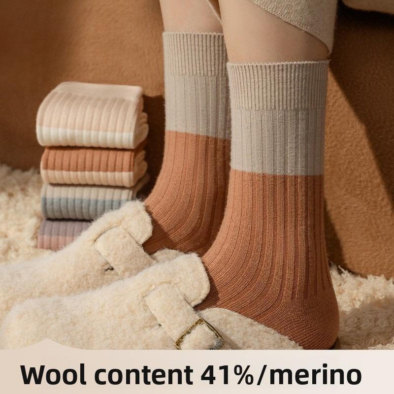 Wool Socks for Women's Autumn and Winter Warmth Mid-calf Socks, Antibacterial Wool Socks