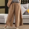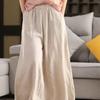 Pantalones Anchos de Lino Vintage para Mujer Cintura Elástica Color Sólido Pantalones Primavera Sueltos Casuales Largos Femeninos