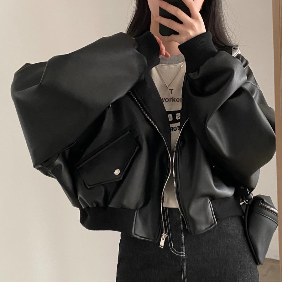 Spring New Color Block Vintage Zipper Pockets Loose Casual Overcoat Women's Jacket