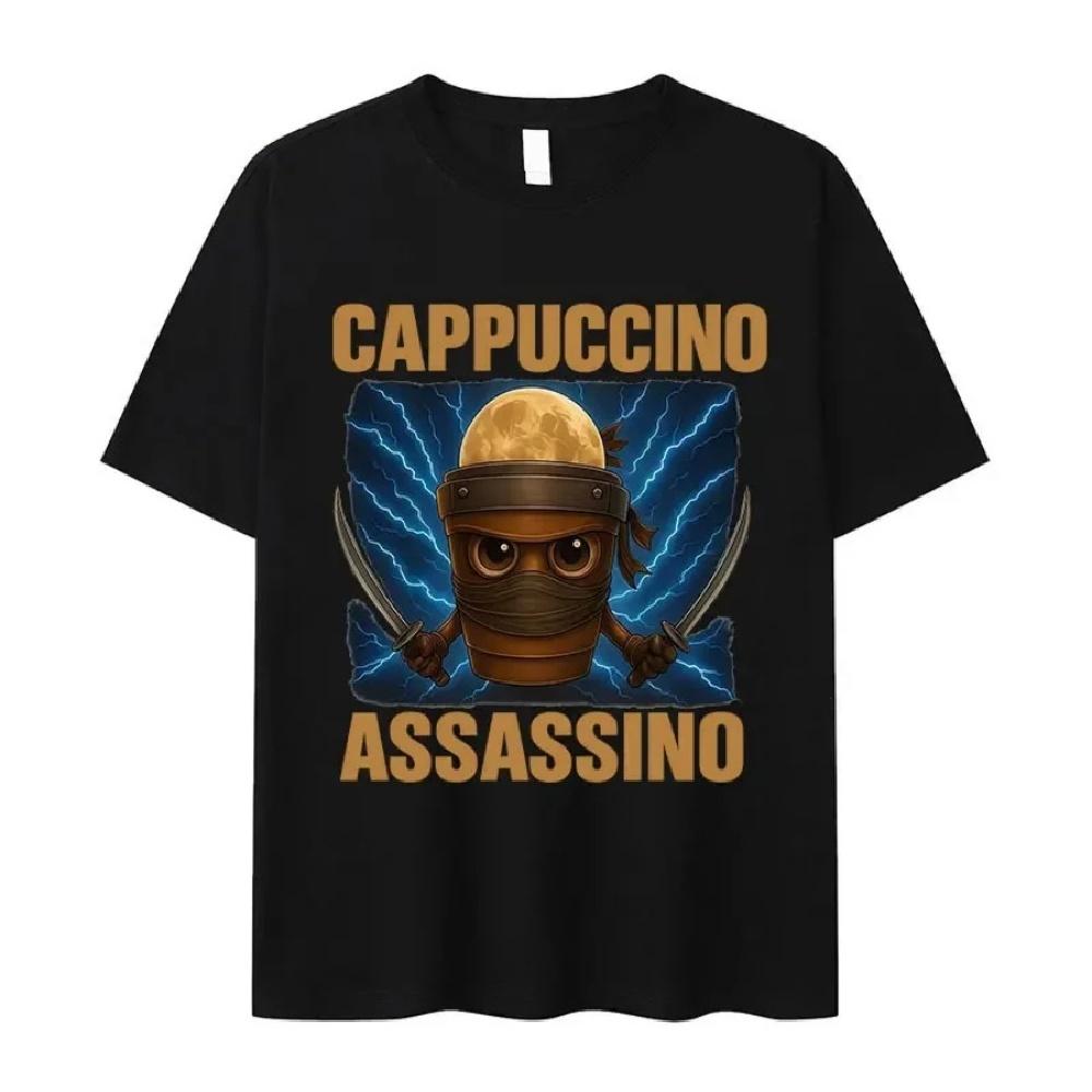 Italian T-shirt Brainrot Interesting Cappuccino Assassin Meme Men Kawaii Women Short-sleeved men summer 100% cotton T-shirt
