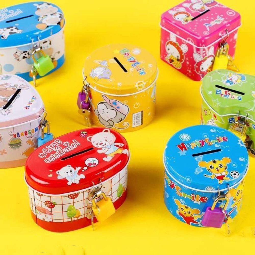 Hucha con Llave Diseño Estampado de Dibujos Animados Tarro de Almacenamiento para Niños Caja de Colección