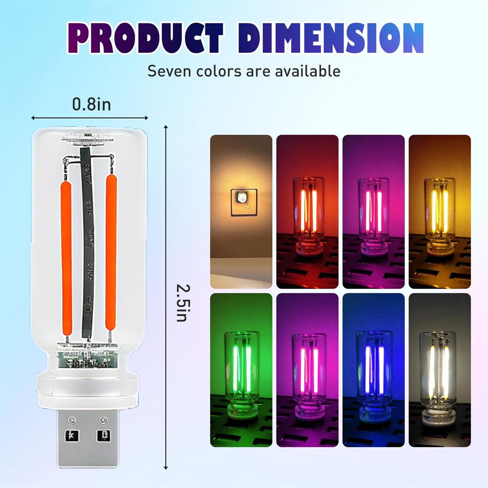 2PCS USB Car Interior Lights Wilress Neon Atmosphere Night Light Retro-Inspired Glass Bottle Touch LED Mood Lamp