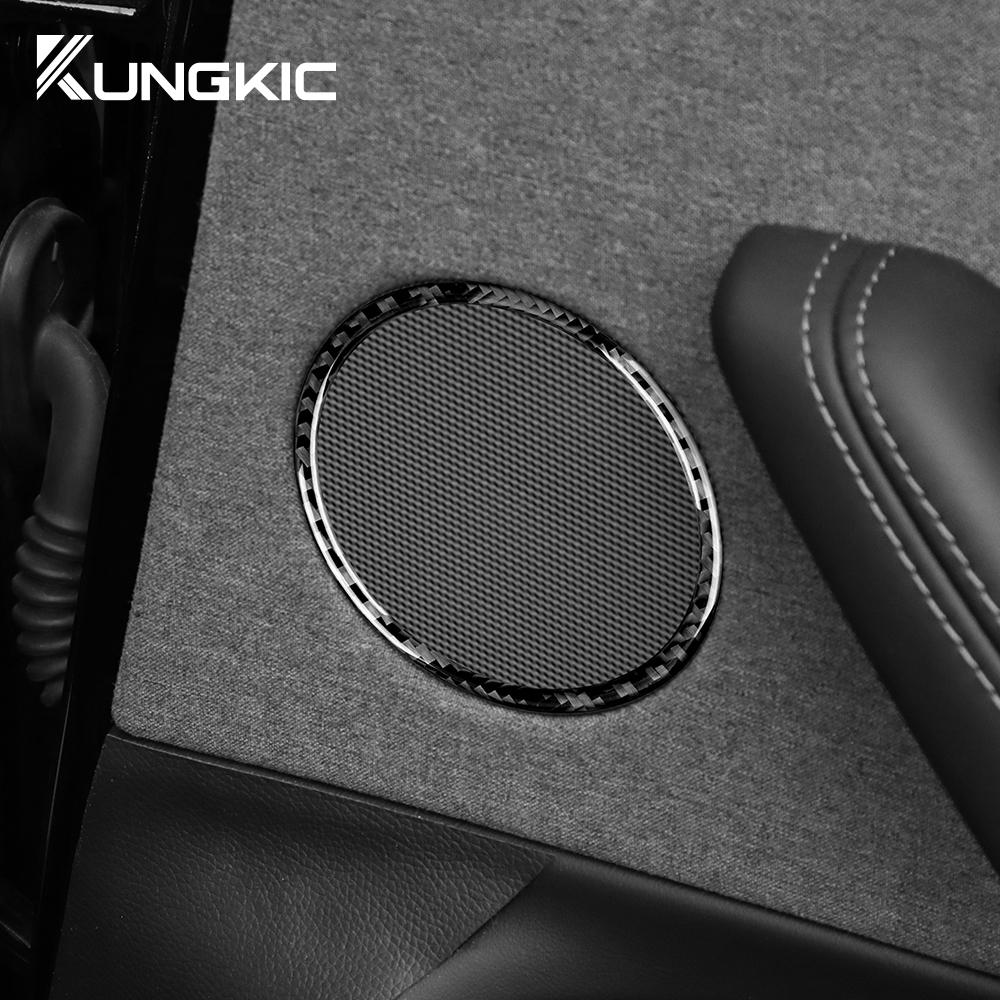 Real Soft Carbon Fiber Sticker For Tesla Model 3 Highland 2025 Rear Door Audio Ring Cover Car Interior Trim Accessories