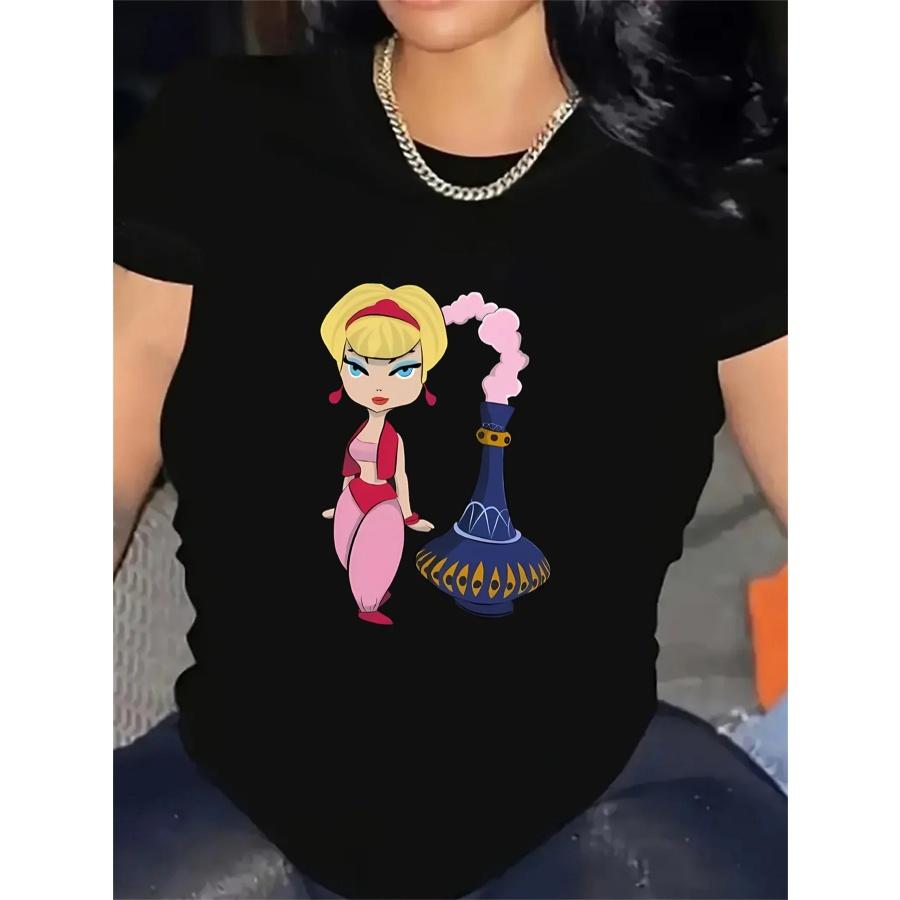 T-Shirt Soft Women's Casual Cartoon Graphic Print T-Shirt Relaxed Fit Round Neck Short Sleeve Comfort Summer Woman Clothing