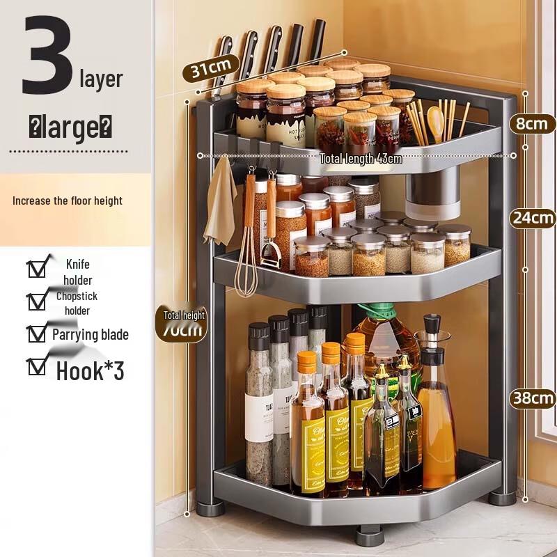 Yingbai 3-Layer Corner Spice Rack with Knife Holder