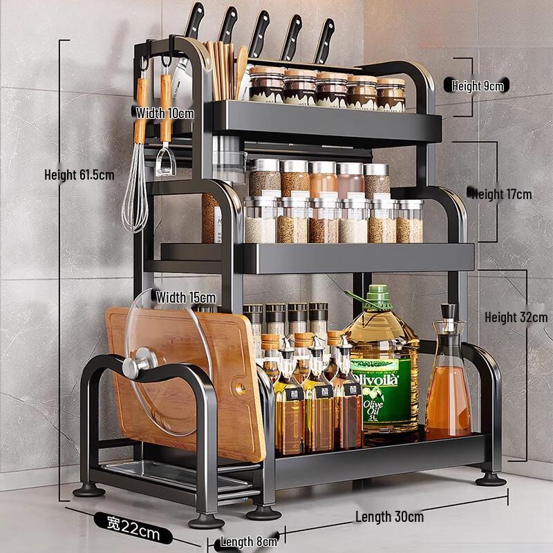 Yunshuang 3-Tier Kitchen Storage Rack with Chopstick Holder & Knife Block