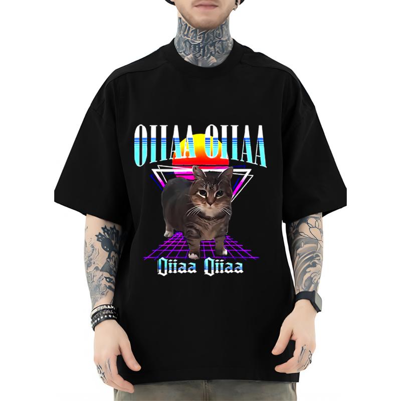 Oiia Oiia Cat Meme Funny Spining T Shirt men women Oversized 100% Cotton short sleeve Summer top Unisex plus sizetops