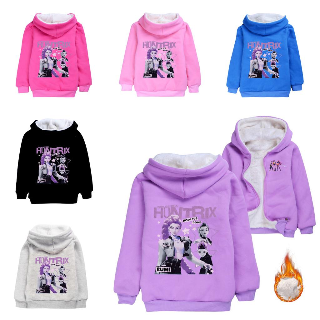 5105 Kids Girls Kpop Zoey Mira Rumi Print Coat Children Casual Long Sleeves Velvet Warm Winter Jacket