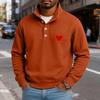 Men's Casual Stand-Up Collar Long-Sleeve Top Print Button-Down Sweatshirt