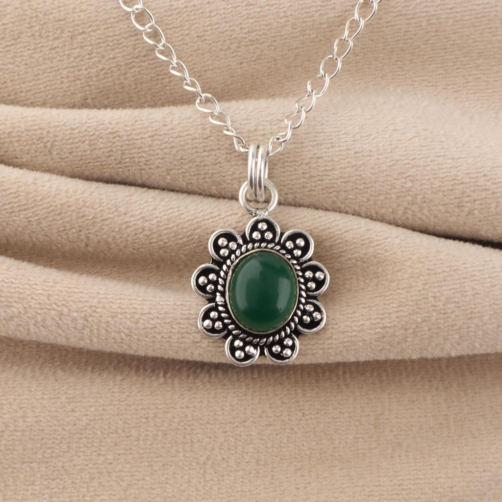 Green Onyx Cab Gemstone 925 Sterling Silver Women Jewelry Handmade Pendant 1.37" Gift For Valentine CP-40-23