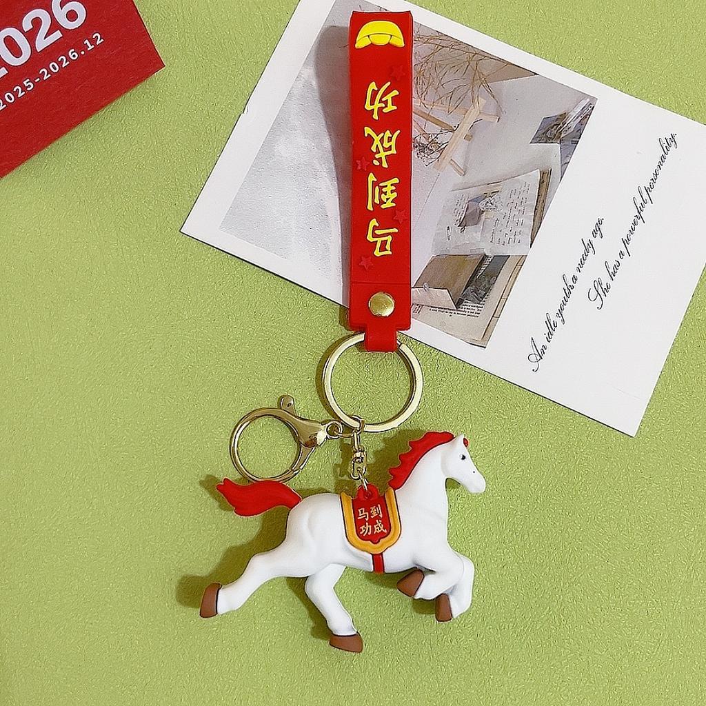 Zodiac Horse Year Keychain Cute Cartoon Pony Pendant Backpack Hanging Decoration Auspicious Blessing Keyring Year Gift