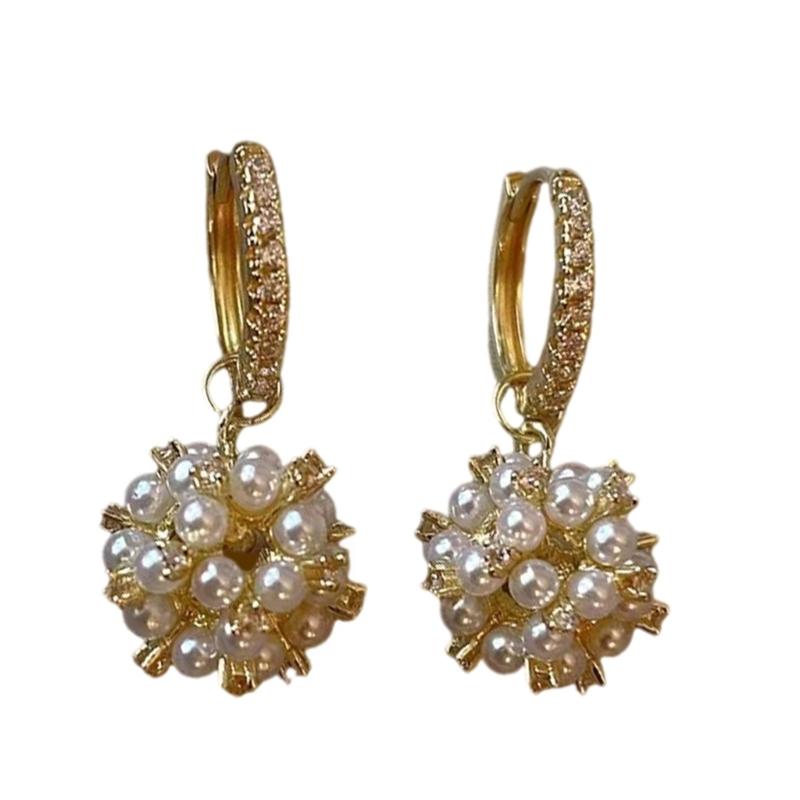 Pearls and Zircon Hoop Earrings for Women Fashionable Drop Ear Rings Rhinestones Ear Pendants Elegant Evening Jewelry