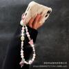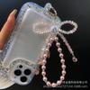Cadena para Teléfono de Perlas Doradas y Lámina de Oro de Lujo Ligero Cadena Colgante Creativa con Lazo Colgante de Bolso Moda Versátil Cadena con Colgante de Perlas para Mujer