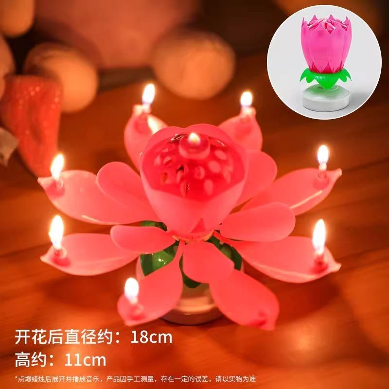 New Lotus Birthday Candle Cake Decorations Creative Blossom Singing Music Surprise Rotating Candle Small Ornaments