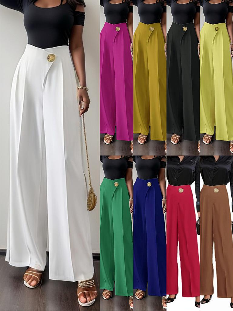Women's New Solid Color High Waist Casual Straight Leg Trousers Formal Pants Long Trousers Suits for Women