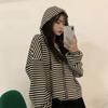 Hooded Striped Lazy Short Jacket and Sweatshirt for Women In Autumn Korean Style Students Loose and Versatile Long-sleeved Top
