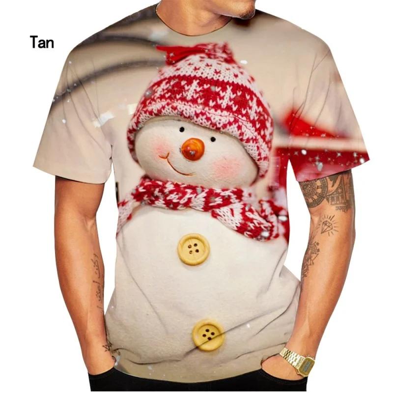 2025 New Fashion Men's T-shirt Christmas Snowman 3D-printed Casual Short Sleeve T-shirt