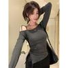 Camiseta Base de Encaje de Manga Larga para Mujer Otoño Invierno