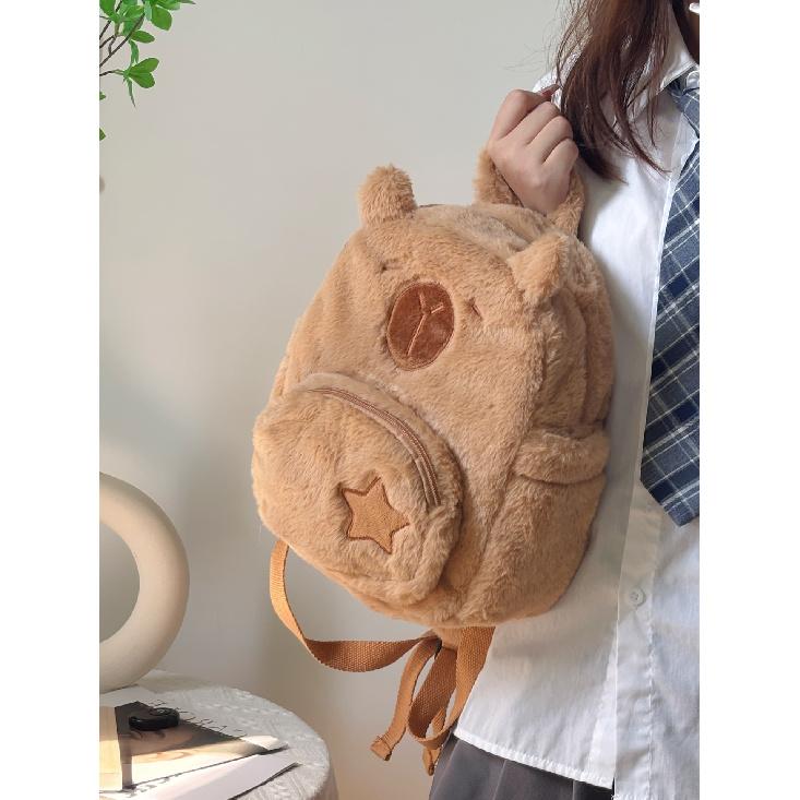 Autumn Winter Cute Capybara Plush Backpack for Women 2024 New Student Commuter Bag Niche Versatile Backpack