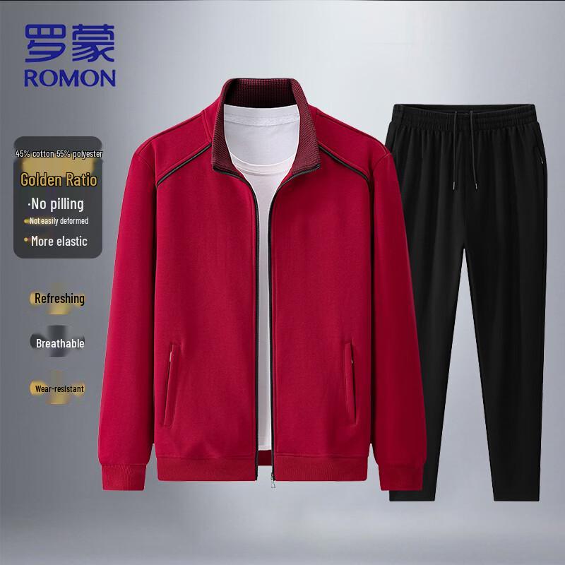 ROMON Men's Stand-Collar Zip-Up Tracksuit Set