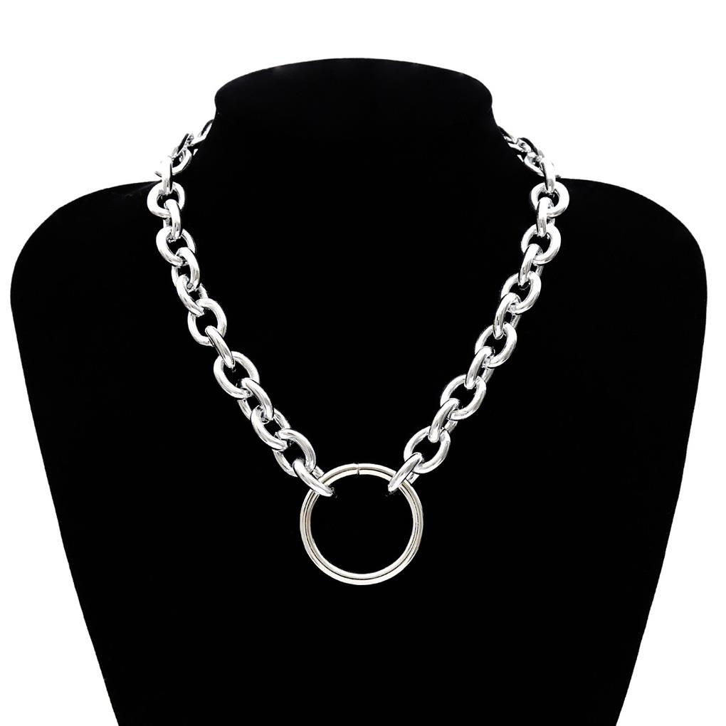 Simple Thick Lock Chain Geometric Hollow Circle Punk Necklace Fashion Jewelry